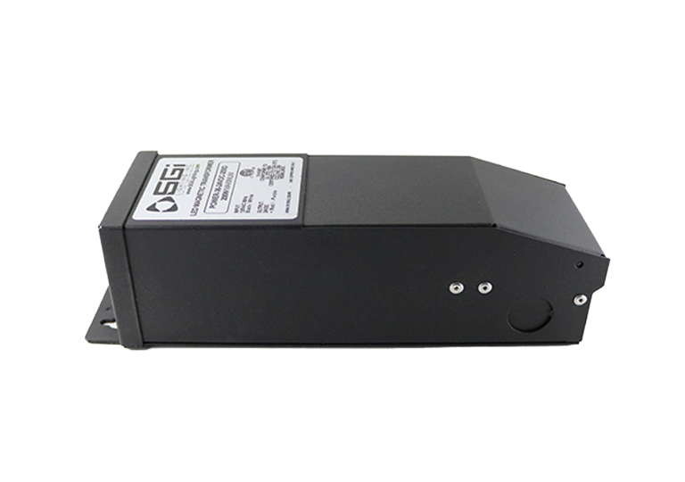 Class 1 Dimmable LED DC Magnetic Driver. Encapsulated transformer in black powder coated NEMA3 enclosure. Enclosure temperature will not exceed 70°C @ 40°C ambient. Removable wiring compartment with 2 knockouts sized for 3/4″ screw cable connectors. Removable cover for the wiring compartment is secured in places by a screw. Controlled with low voltage dimmer. Two auto-reset circuit breakers. ETL Listed. CSA Approved. UL Standards 5085-1. Class 2. Power factor 0.95. 5 Year Warranty.